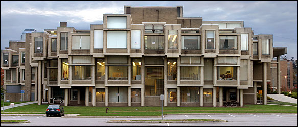 The Brutalist style was often chosen for commercial and institutional buildings in the 1960s, perceived as a relatively inexpensive solution to create large and enduring structures that were less vulnerable to vandalism. Many Brutalist buildings were constructed on university campuses in that period of great collegiate expansion.