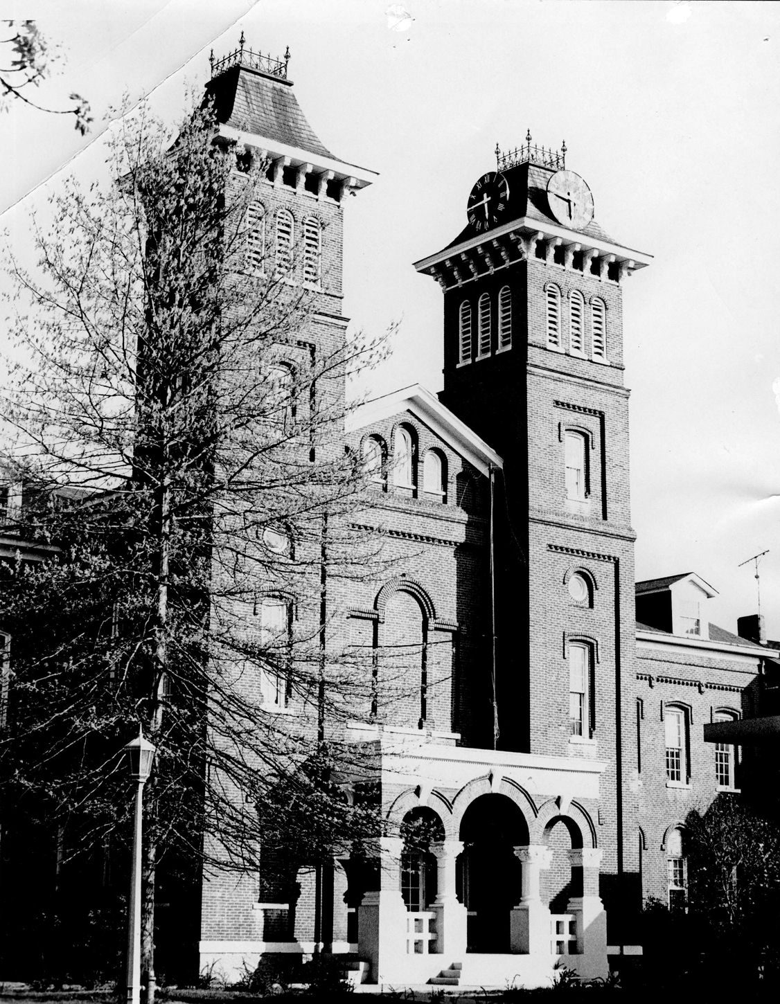 California’s Old Main was individually listed in the National Register in 1974 for not only its association with one of Pennsylvania’s early Normal schools, but also for its regionally distinctive Romanesque Revival architecture. Completed in 1870, the building contained the chapel, dorm and classroom space, and administrative offices. Originally built in the shape of a cruciform, with the unique dual towered central entrance, the northern wing was demolished in the late 1960s in order to make way for Frich Hall.