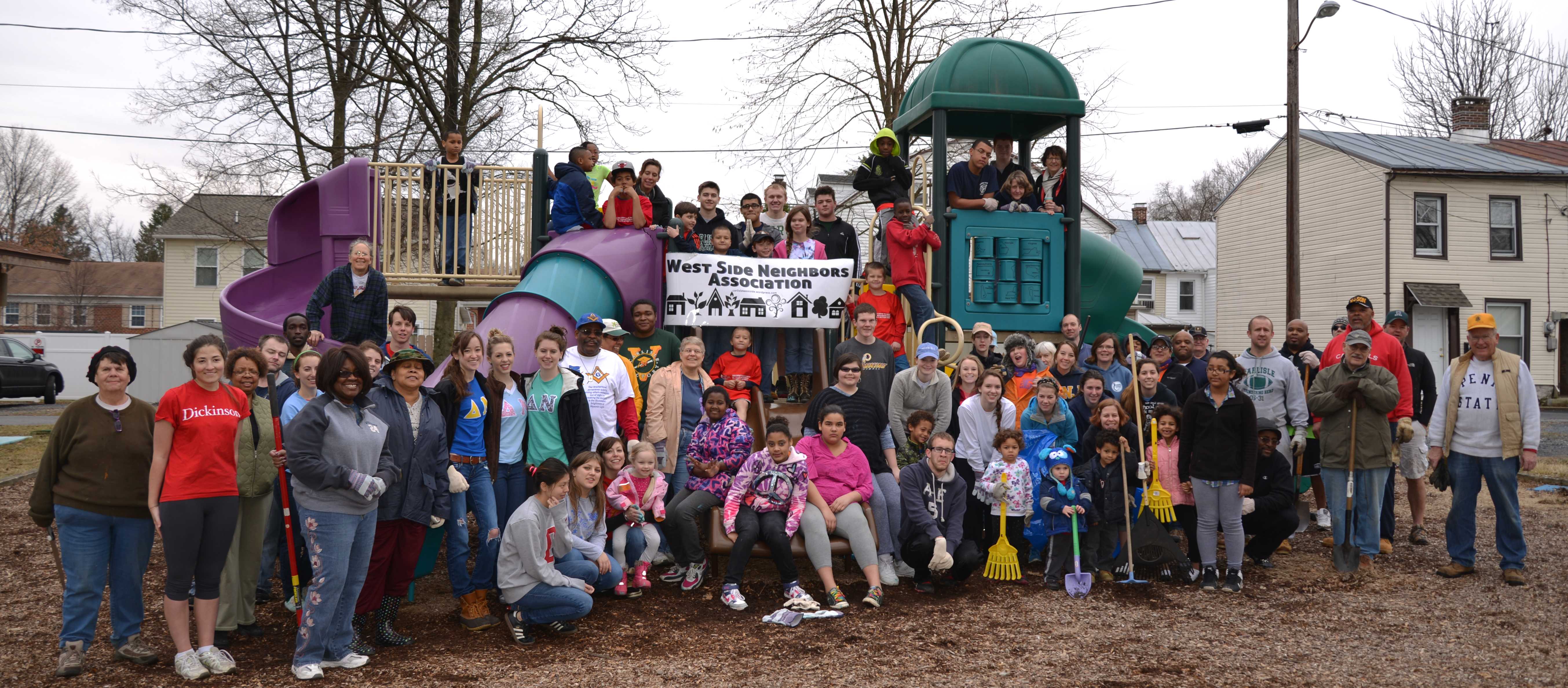 Community members gather at the Herberlig-Parlmer Park in Carlisle, Pennsylvania for a clean up day coordinated by the West Side Neighbors Association. Photo courtesy of Pennsylvania Humanities Council.