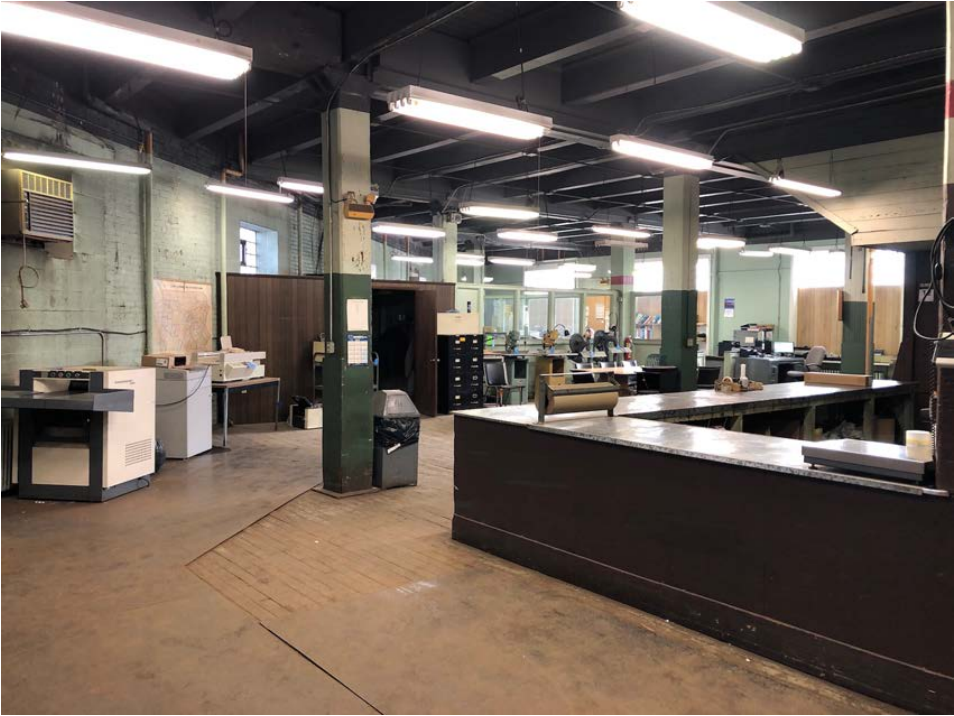 • retention of original showroom and office space pressed metal ceilings,