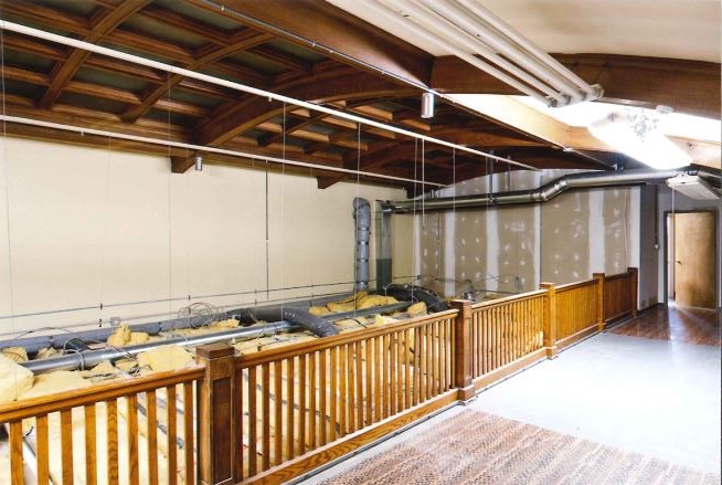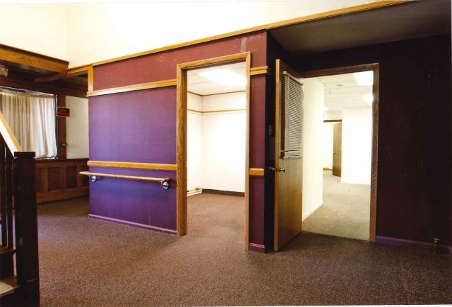 In 1938, the Erie Insurance Exchange purchased the building as the headquarters for a company that would grow into a Fortune 500 company. As the company grew, the interior of the building was modified with a mezzanine level to accommodate the growing workforce. By 1956, Erie Insurance outgrew the building and sold it to the Erie County Crippled Children’s Society. The Society’s mission grew as it became the Achievement Center. The growth of services as an education and therapy center for disabled children required the expansion of the building with an office addition and gymnasium. Unfortunately, the building was engulfed by the additions and the Arts and Crafts elegance of the interior was covered by drywall partitions, suspended acoustical tile ceiling and wall-to-wall carpet reminiscent of the finest 1980’s office building (see before photos).