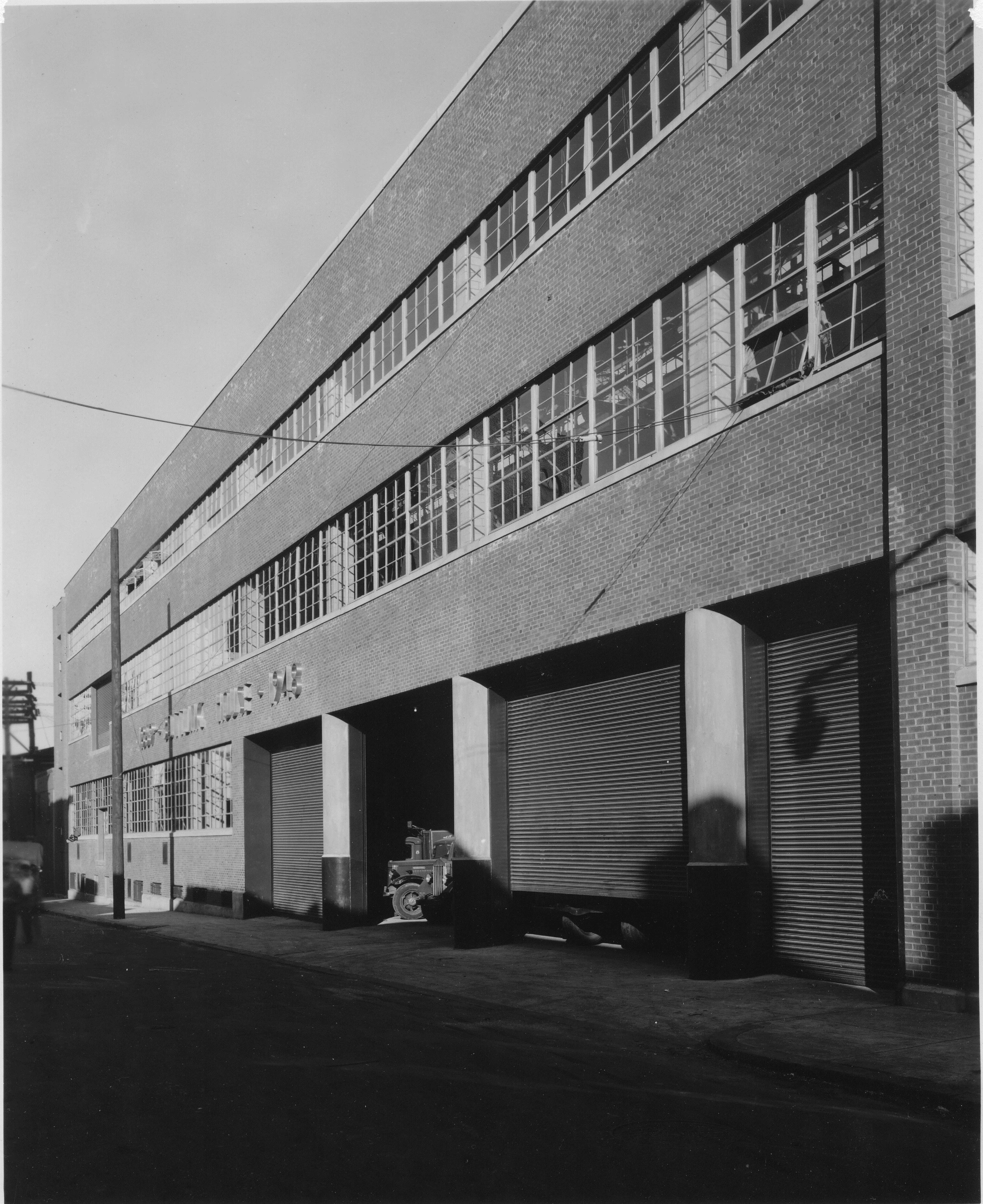 The Philadelphia region adapted the International Style for industrial and institutional buildings a bit differently than in other geographic areas. Key to this regional distinction was the influence of Paul Cret, an architecture professor at the University of Pennsylvania, and a local tendency to retain continuity with the past. The result was the widespread use of brick as an exterior treatment—a material dominant across the city. Cret’s theories of modernism were a profound influence on his most famous student, Louis I. Kahn. The vast majority of International Style buildings in the Philadelphia region, both before and in the first decades after World War II, used the city’s traditional material palette: red brick with light-colored trim (usually concrete instead of earlier stone), with comparatively little use of the glass curtain walls otherwise typical of the International Style.