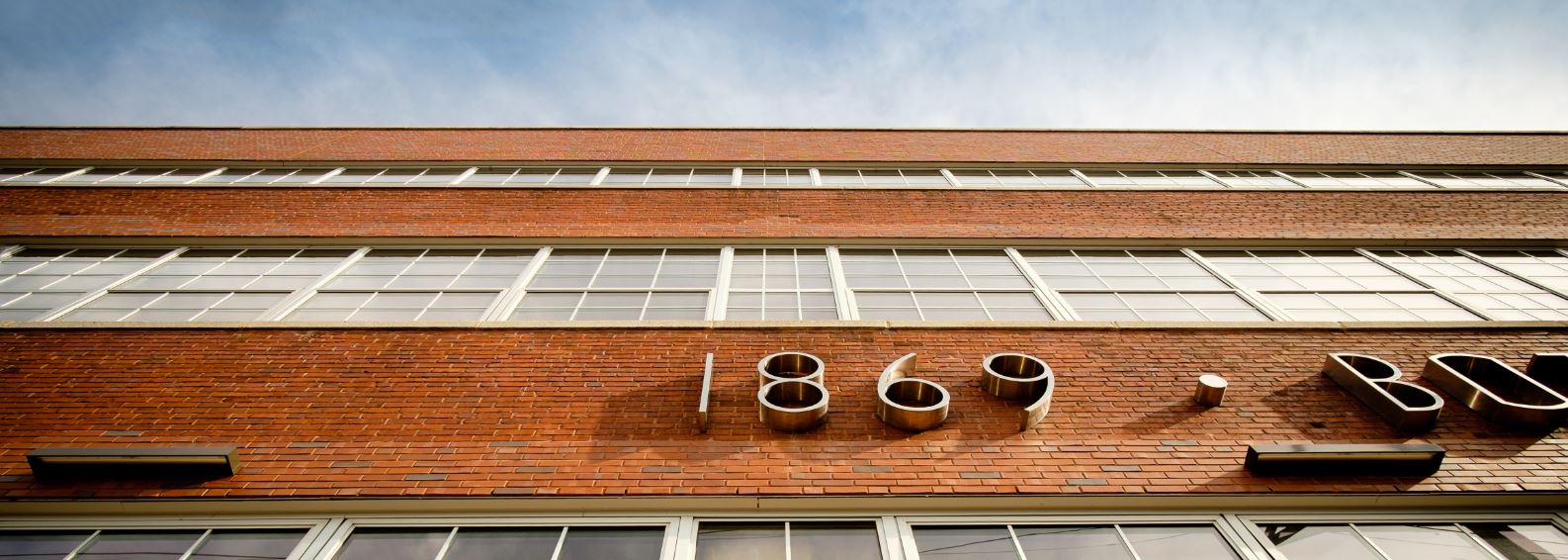 The Bottling House features International Style influences, showcasing the distinctive design characteristics of post-World War II industrial buildings in the Philadelphia region, including horizontal massing; asymmetrical organization; ribbons of metal-frame windows; red brick with exposed concrete trim; and large-scale signage in a sans serif font.