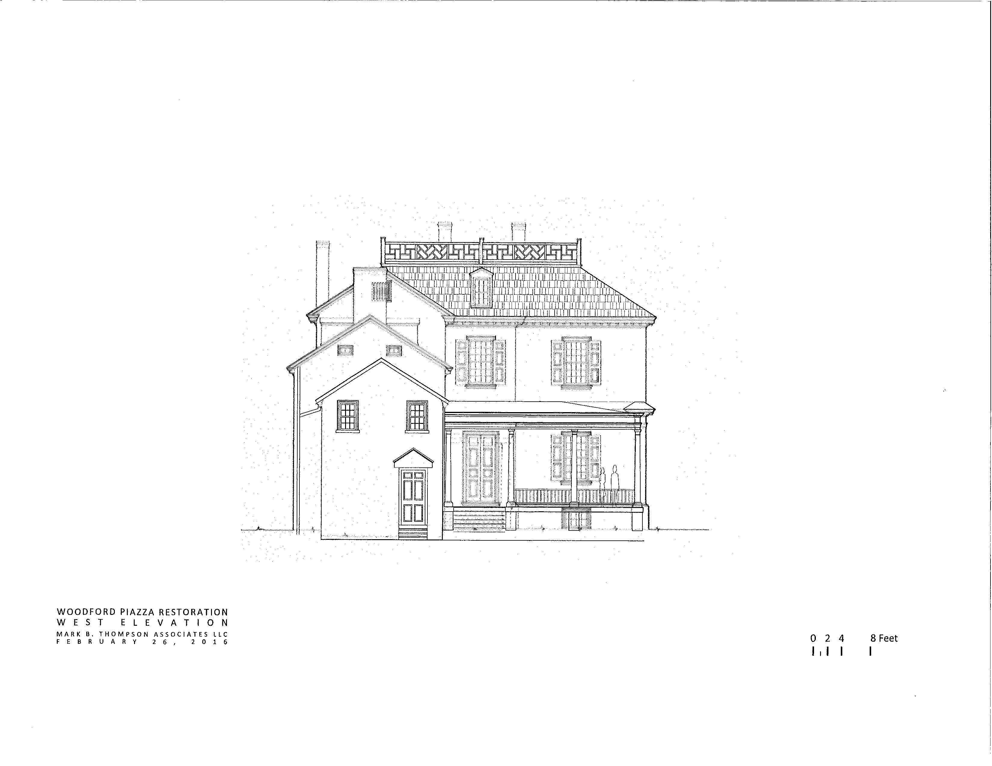 Architectural plans for the reconstruction of the piazza on Woodford Mansion. Courtesy of Mark B. Thompson, LLC, February 2016.