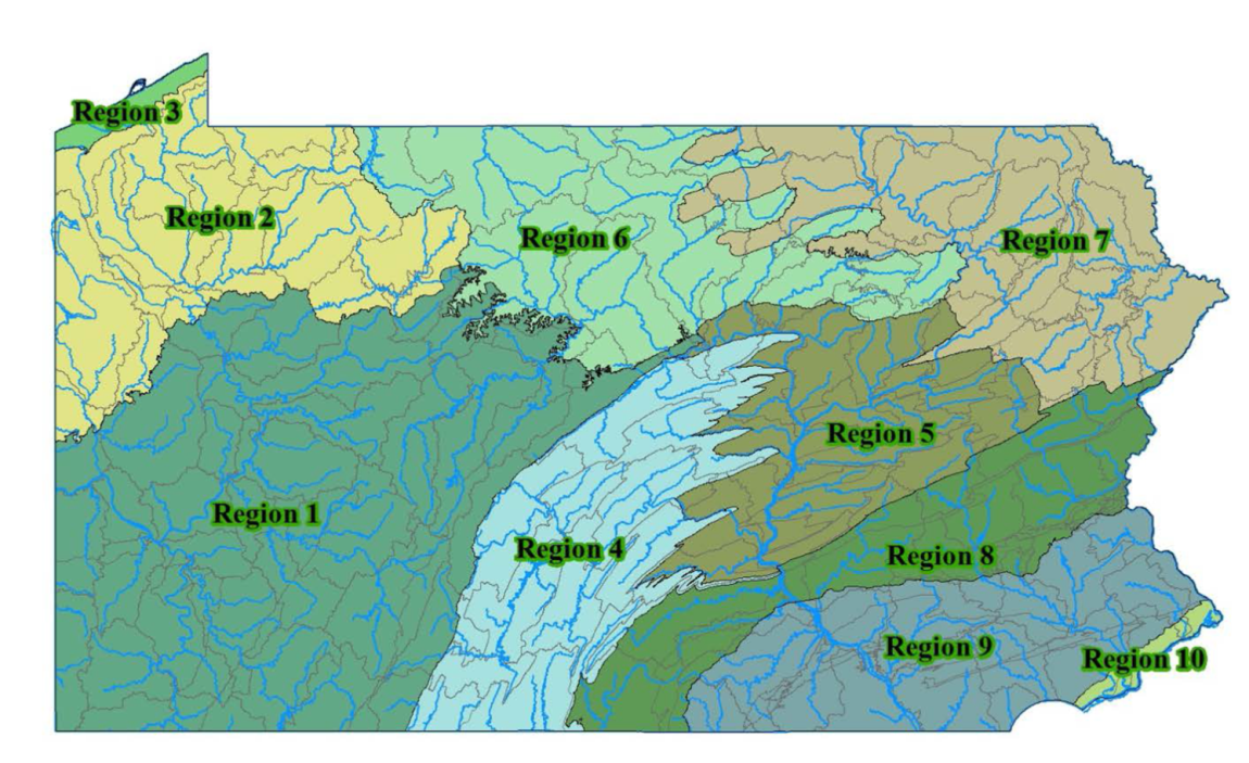 • 10 Regions, based on Physiographic Zones