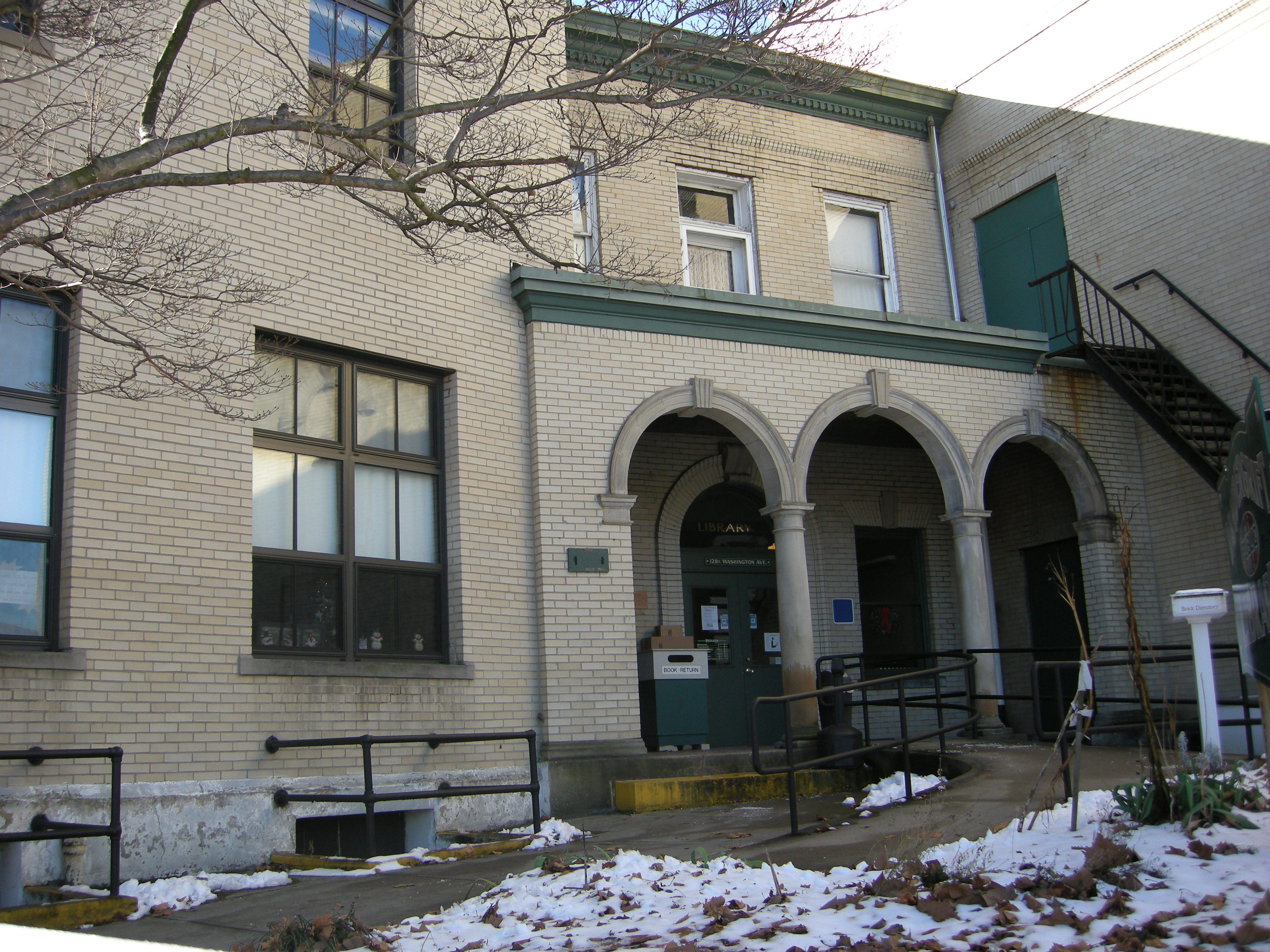 The theater itself stands out in the community, not just because it sits at a major intersection, but for the four large, white Ionic columns on the front of the building. The adjacent section of the building houses the Vandergrift Public Library, formerly the Municipal Building. When the library first opened in 1901, McMurtry challenged the residents to match his donation of 1000 books to prove that they were serious about owning a library. As a result, the Vandergrift Public Library Association was formed and the donation was matched.