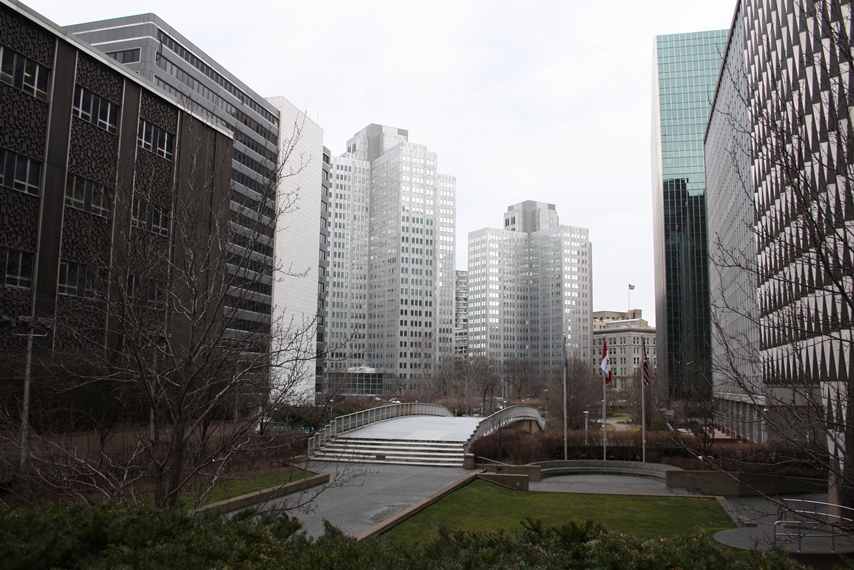 With the 1945 announcement by Governor Edward Martin that the state would fund “clearing of thirty-six acres at the lower Point, removal of two unsightly bridges, construction of two new bridges upstream, and creation of a state park at the Point,” the redevelopment of 59 acres at the Point began. The plan called for 36 acres to become Point State Park and 23 acres to be turned over to the Equitable Life Assurance Company to develop. Between 1945 and 1974 the Point was completely redeveloped . A park and fountain were created and 12 mostly high-rise buildings were constructed from 1950 to 1969 in two landscaped plazas– Equitable Plaza, atop an underground parking garage, and Gateway Plaza. One building, the former Pittsburgh Press Building, dates to 1927, but was refaced in 1964.