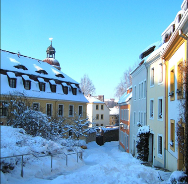 - A flounder house (in background behind large yellow building) in Gorlitz, Saxony, Germany. Source: Wikipedia.