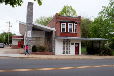 To help answer these questions, PHMC partnered with the Architectural Archives of the University of Pennsylvania to mount a photographic exhibition showcasing Southeastern Pennsylvania’s mid-century vernacular architecture. Archives curator William Whitaker turned our office on to the work of Philadelphia-based photojournalist Betsy Manning, who has been shooting these modernist diamonds in the rough in her spare time for the past 20 years. By day Betsy works in the Photography Department at Temple University, but on the weekends she can often be found driving the commercial strips, side roads, and strip malls throughout the region looking for interesting, but probably overlooked midcentury landmarks to photograph. Over the years she’s amassed a very impressive collection of photos of buildings between Philadelphia and Harrisburg that collectively tell the story of everyday Modernism in the region. Many of the buildings she’s photographed have either been demolished or altered since her visits, so her images may be the only photographic record of some important 20th century buildings.