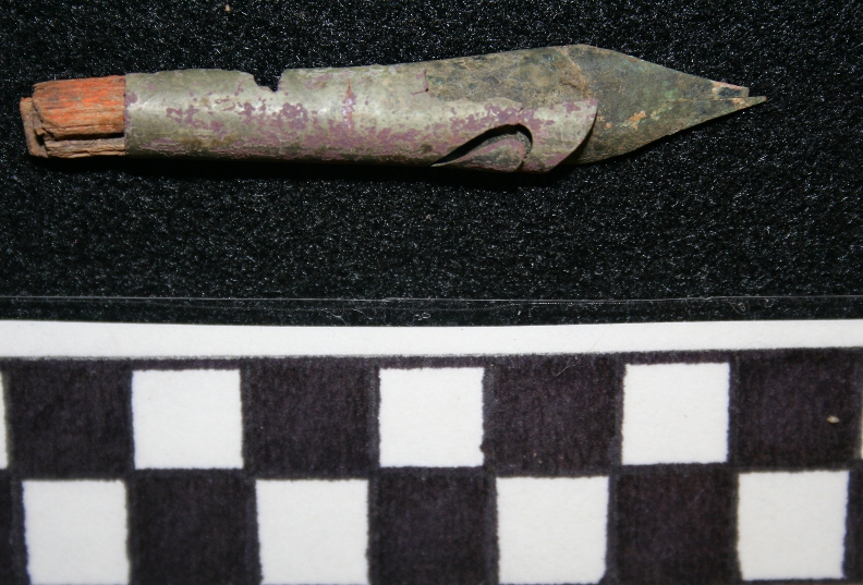 Archaeological excavation of the multi-generational Allen family residences at Pandenarium helped to reveal a past that had largely been forgotten by the present community. John and Rosie Allen were two of the settlement’s original adult inhabitants, living upslope of the stream in the row of previously built houses circa 1854 (Hopkins 1873; Jaillet 2011). A number of personal artifacts were recovered from the John and Rosie Allen’s residence to include a steel nib pen, possibly used by one of the Allens’ children attending the local school, as 1880 census data indicates the elder Allens were illiterate (Jaillet 2011). One child, Bob Allen, born at Pandenarium, would build a house at the northeastern corner of the settlement, near Indian Run, circa 1880s (Jaillet 2011). According to the 1880 census, Bob Allen lived in this house with his European American wife, Lizzie, and their four biracial children, Joseph, Samuel, William, and Rettie. A graphite pencil fragment and a fragmentary children’s teacup were two of
