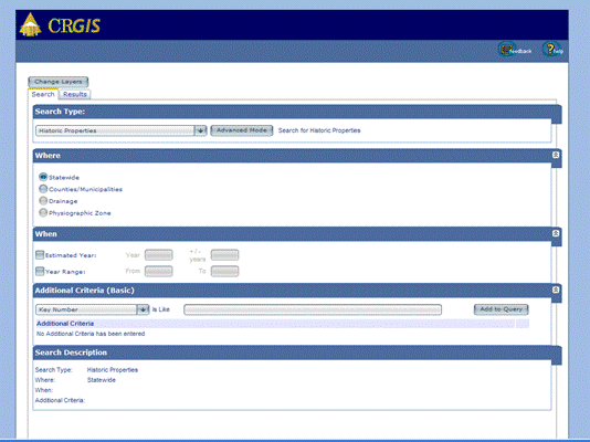 The biggest changes to the CRGIS are with the AskReGIS database search. Visually the look has completely changed. We now have a look that better matches last year’s changes to the AOI page. The layout is still very similar to the former version of the search. You still start at the top by selecting the type of search, and you still select other criteria below. One of the major differences is that now you will be able to switch the mode of search you are performing into advanced mode. This means that you can make a more advanced query of our database to search nearly every field contained within. For most users you will never need to do this, but we do hear from some users that they wished there were more options for their searches. That request has definitely been answered. The results page has also been updated to give it a more modern feel.